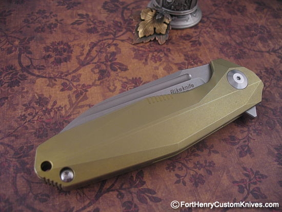 This is the Recently Released 1504B Mid-Tech Flipper from Rike Knives.  This Limited Edition example has upscale Gold Anodizing on the entire Titanium Frame and Hardware