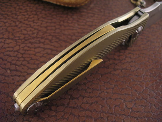 This knife has a Titanium Clip and Ti Backspacer that have been Anodized to compliment the frame.