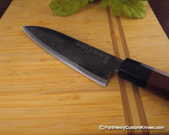 Direct from Master Takeda – the most often used knife in any kitchen, in American this might be termed a Larger Paring knife but in Japan it is called a Petit (pronounced Petty ) in a Kuro-Uchi style finish. Perfect for all types of push cutting or slicing, this is one of those blades you will love to use again and again.