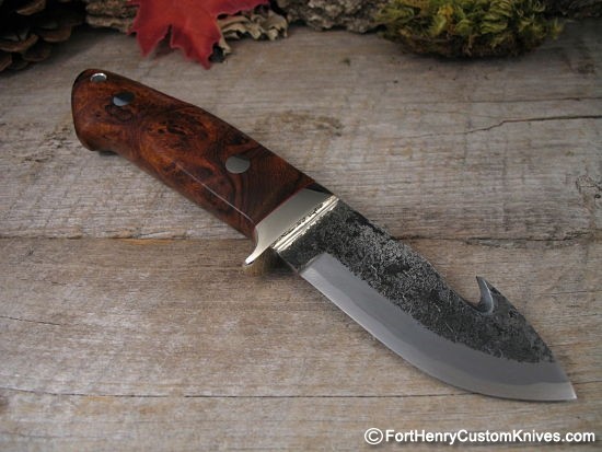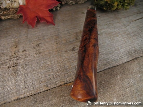 The Amboyna Burl handle has amazing grain and depth and it has been expertly contoured for an incredible fit!