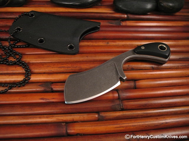 This model is their Neck Cleaver – the integral design is crafted from 3/16" thick Premium S35VN steel, acid etched and Stonewashed to to provide a unique blade finish that is resistant and attractive. Completely contoured on all edges for maximum comfort and secure grip