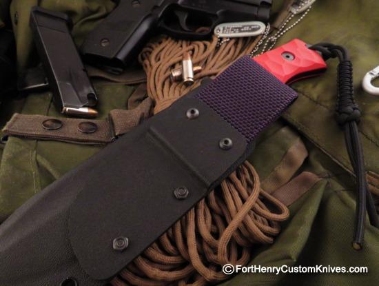 The knife comes with a Secure, Custom Molded Kydex Belt Sheath with Red Kydex accents.