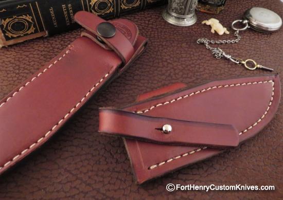 This Steingass Custom knife comes with not One. but TWO Custom Leather sheaths – one by Mr Steingass set for RH Belt carry, the other is for RH Horizontal Cross Draw carry.