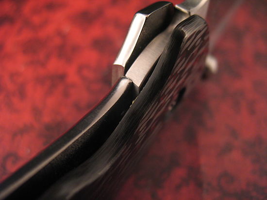 The Handle Scales are Red & Black Carbon Fiber and it has Dual Thumb Studs for reverse carry.