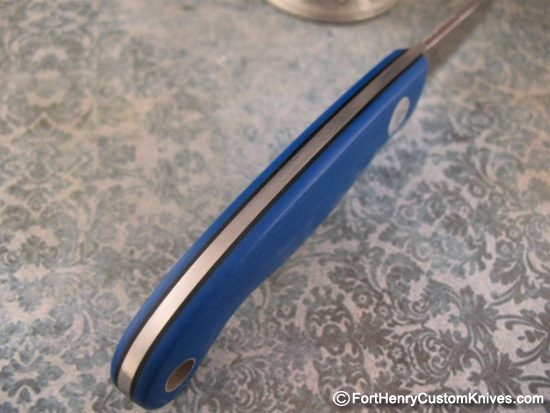 Hand Crafted from the toughest handle materials, great looking Blue G-10 with Full Black Liners and Custom Thumb Ridges on the Spine.