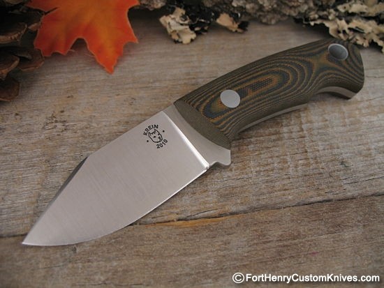 This Full Tang knife is made from 3/16″ Thick A2 Steel with a Full Flat Ground blade. Blade Stamp of Tom’s 2011 Logo.