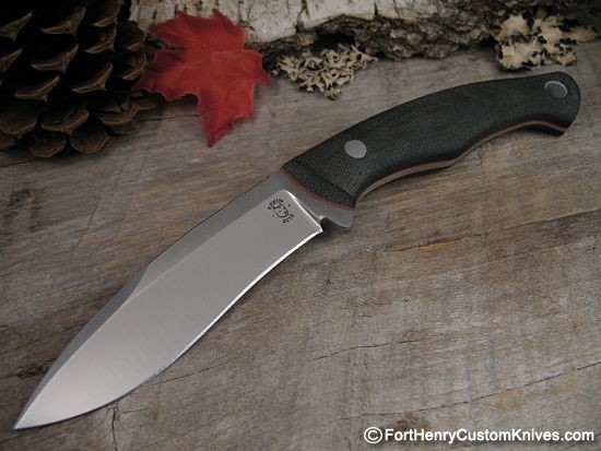 a Big Full Tang custom with very ergonomic Bead Blasted Black Micarta handle w/Red Liners and Krein Signature oversized lined Thong hole.