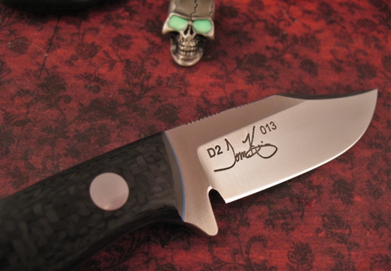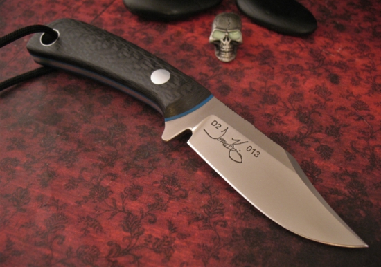 This Model is a Full Tang custom with Blue Liners and near Mirror polished, D2 Steel Blade