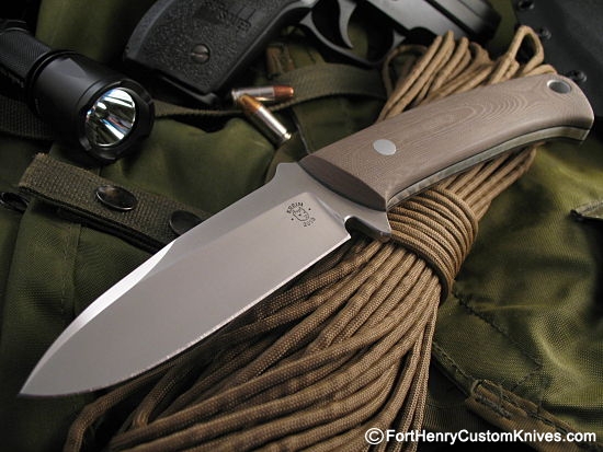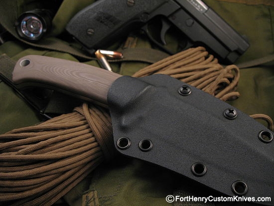Full Tang, thick Black liners with tough Desert Tan G-10 handles and signature oversized Thong hole.