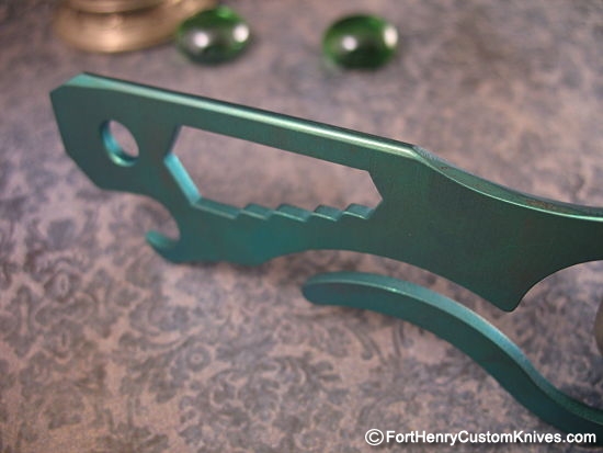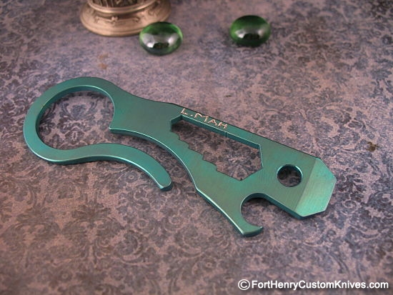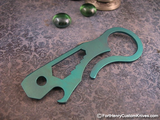 It is crafted from one Solid Piece of Anodized Titanium. It acts as a Bottle Opener, Hex Nut Driver, Pry Tool, AND a Screwdriver and a small Lanyard / Keychain Hole.