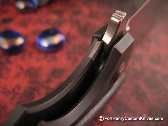 The Reverse Side scale is Flat / Matte Anodized Titanium, crafted to ride tightly against the inside of your pocket with a “Hidden Screws” Low Rider Titanium pocket Clip set for Tip up Carry.