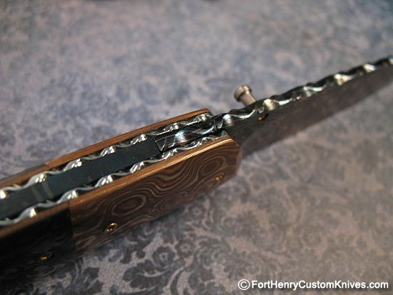 The Backspacer is also Mosaic Damascus and the Titanium Liners are Fully Fileworked.
