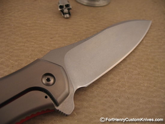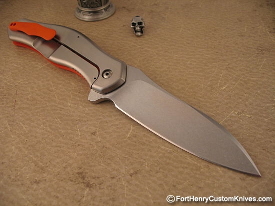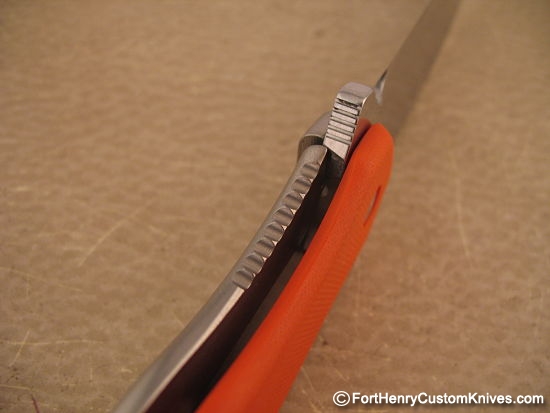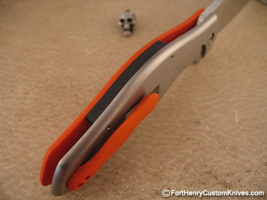 The entire Lock Side Titanium scale has a uniform Orange Peel finish and the custom clip matches the front scale.