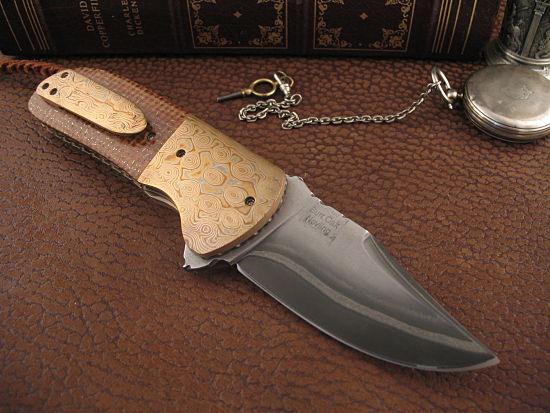 Mark Nevling of Burr Oak Knives is a well known Bladesmith who is best known for his gorgeous Damascus and Titanium Dress Folders which routinely sell in the $1,500 – $2,000 range.  Mark has been featured in BLADE and the Knives Annuals publications recently for both his Damascus knives and his high Quality sheaths.