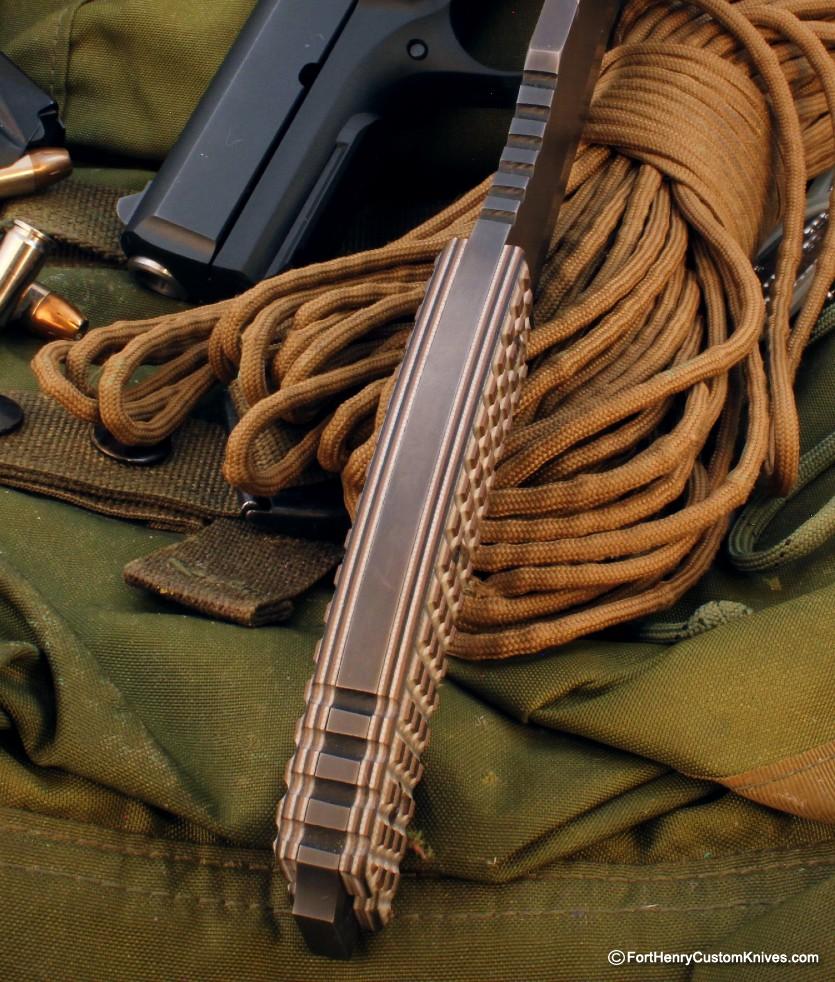 This Heavy Duty design has tons of potential, with Tim’s Deep Cut Texture Pattern G-10 Handle Scales, Hand Filling and very secure. This one also has an Exposed Hammer Poll Butt and Lanyard Hole.