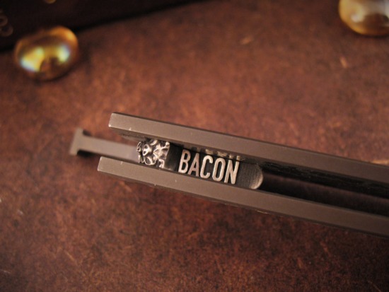 This is one of Michael’s latest models ~ a Large Custom BaliSong with Custom Etch and “Got Bacon” Pig Backspacers