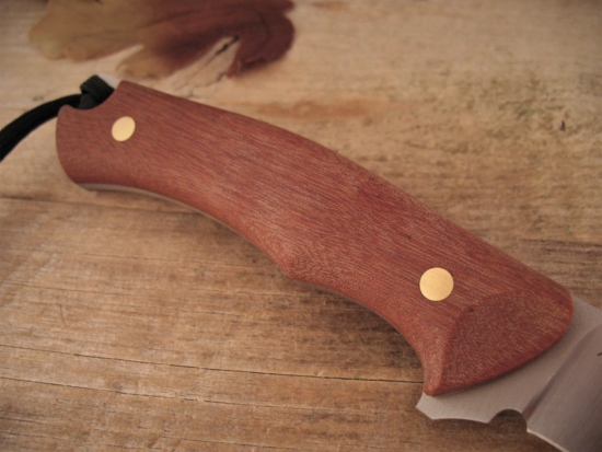The handle is Contoured and Designed to Fill the Hand and it has a slight Birds Beak Butt shape to help keep the handle firmly in your palm. The Handle Scales were Cross Cut from the same block of Linen Micarta so they match perfectly.